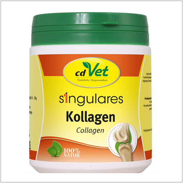 Da durch den Knochen keine Nervenbahnen und Blutgefäße führen, hat der Hund erst Schmerzen, wenn der Knorpel irreparable Schäden aufweist. Bei Welpen und Junghunden fördert die Zufuhr von Kollagen-Hydrolysat das Wachstum des Bewegungsapparates, sowie des Bindegewebes.